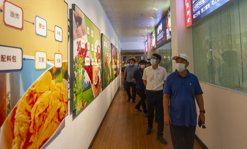 (黨員們參觀螺螄粉文化長(zhǎng)廊)