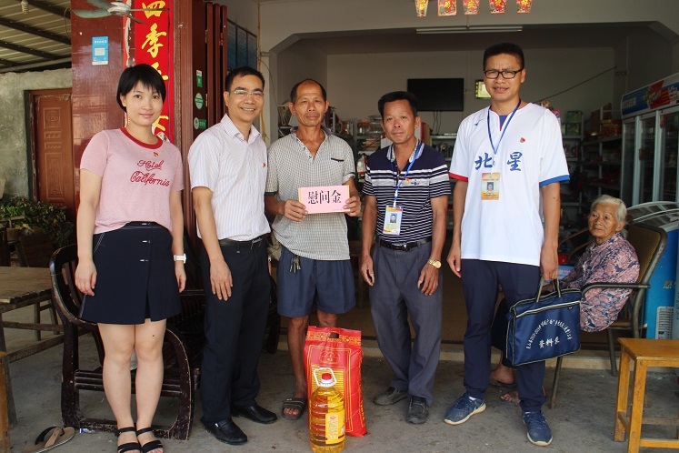 為紀念建黨97周年,弘揚黨的光榮傳統(tǒng)和優(yōu)良作風,充分體現(xiàn)黨組織對基層黨員的關懷和愛護,6月28日上午,集團公司黨委副書記覃世金同志組織部分黨員干部來到幫扶村—靈山縣伯勞鎮(zhèn)新禾村,開展集團公司“七一”慰問生活困難黨員、老黨員和村干部活動,為他們送去慰問金和慰問品。