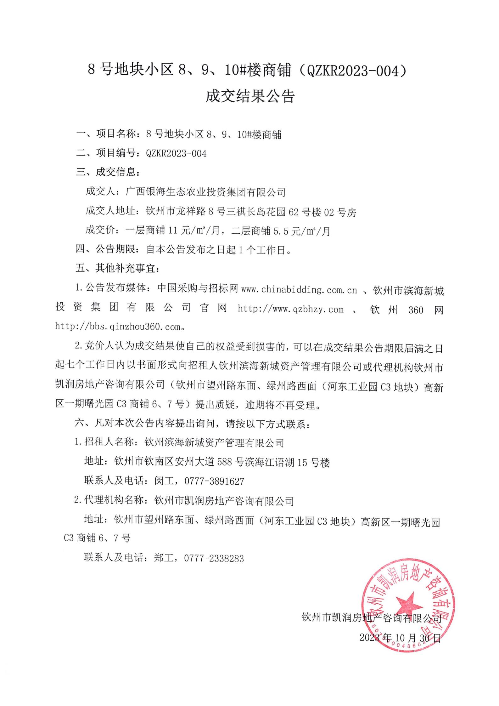8號地塊小區(qū)8、9、10#樓商鋪成交結果公告