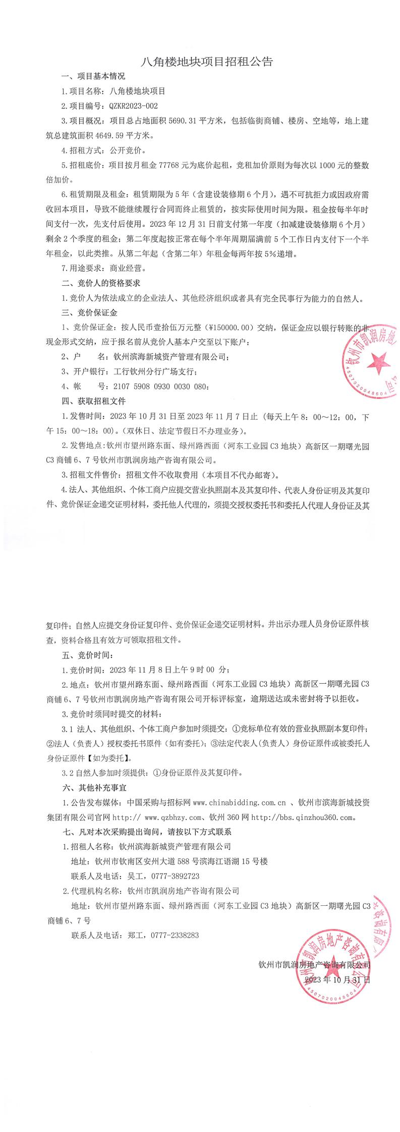 八角樓地塊項目招租公告