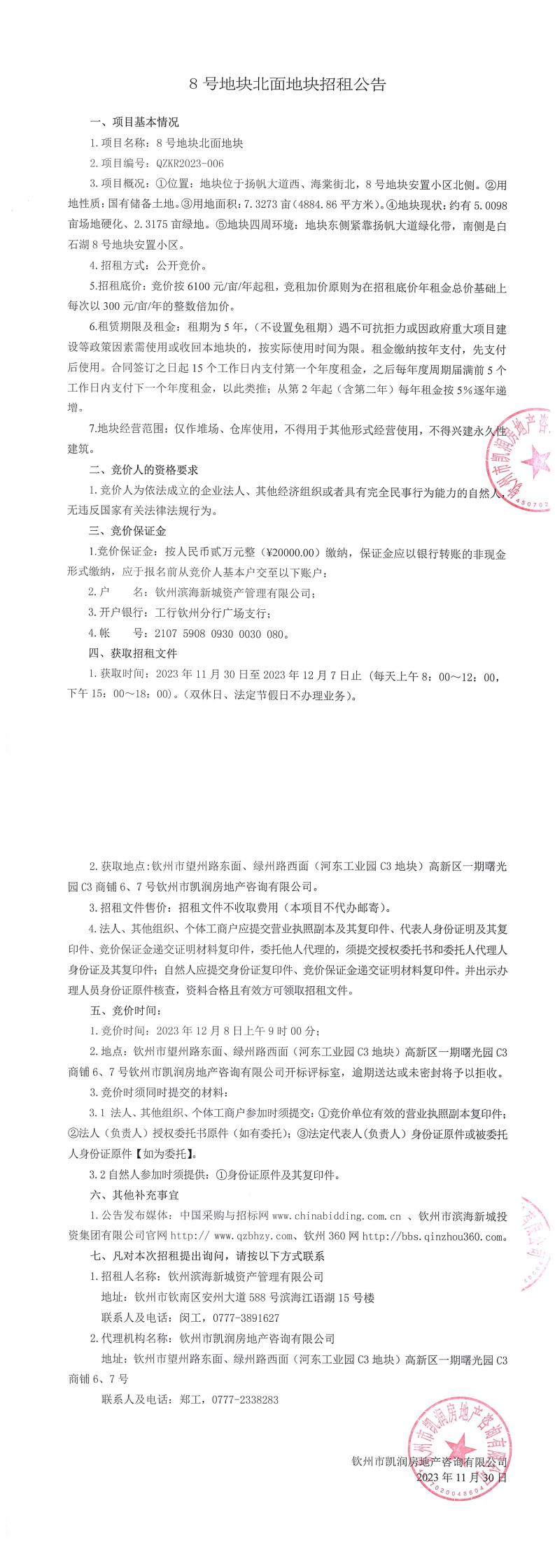 8號地塊北面地塊招租公告