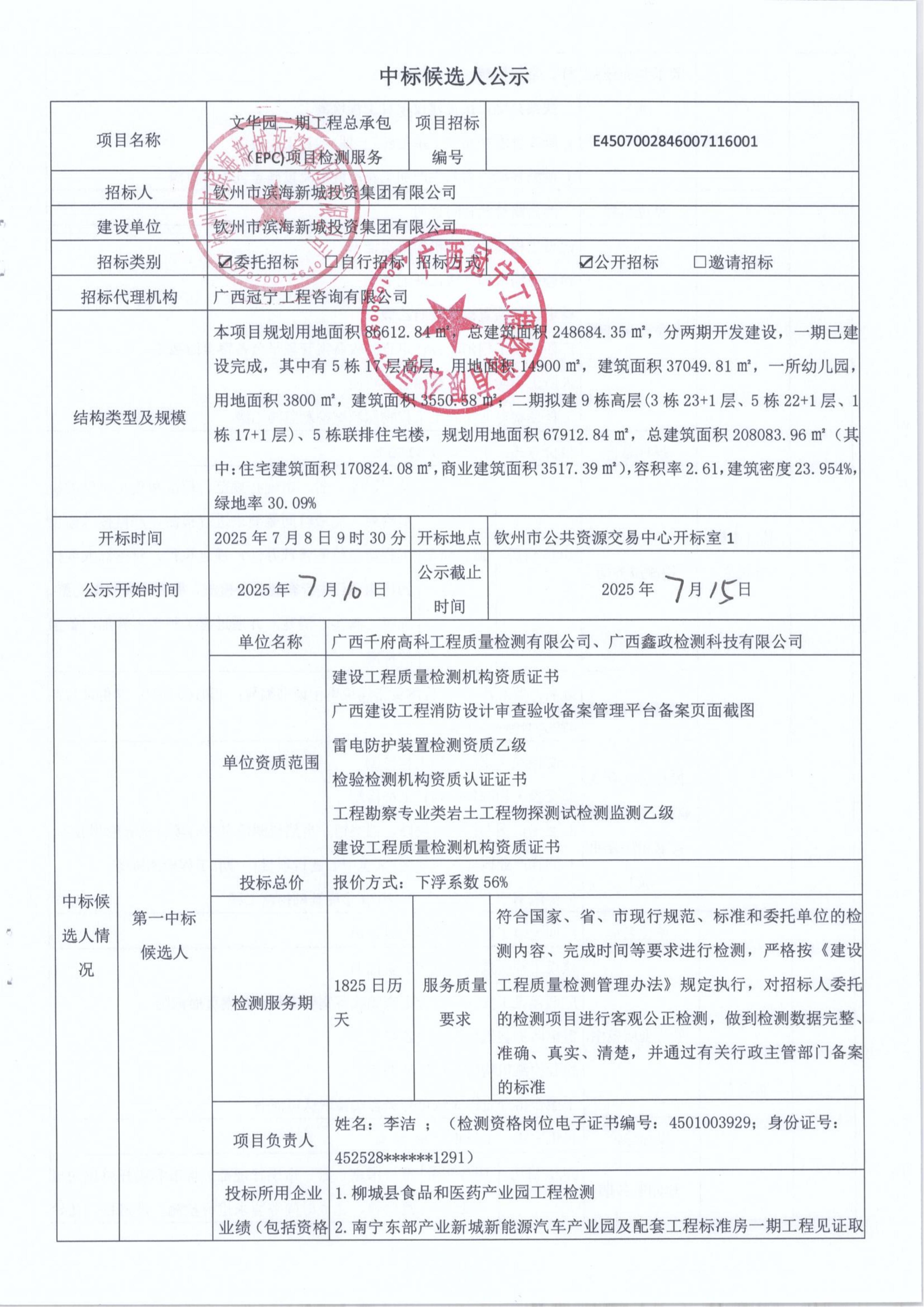 文華園二期工程總承包(EPC)項(xiàng)目檢測服務(wù)工程檢測招標(biāo)中標(biāo)候選人公示