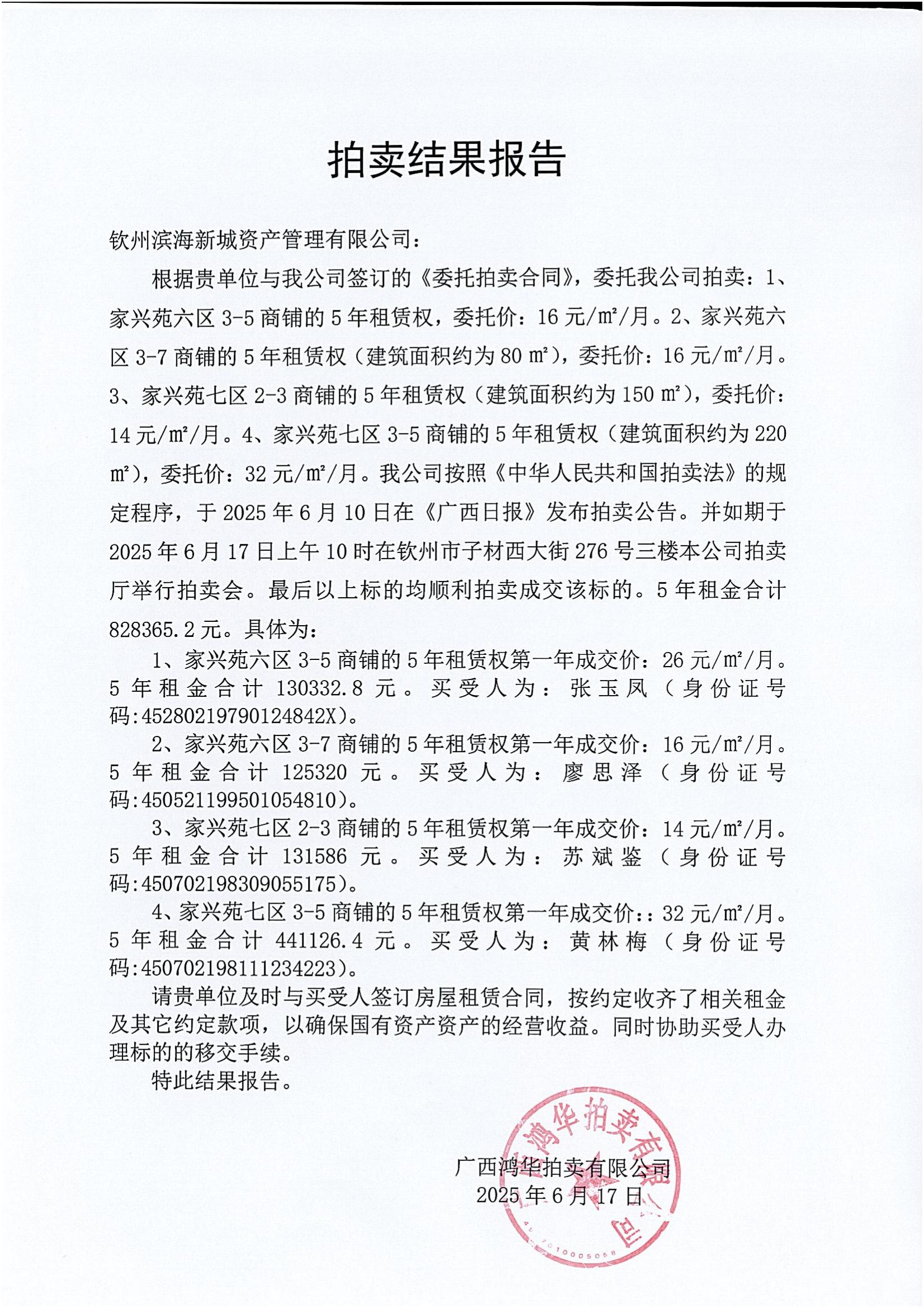 拍賣結(jié)果報(bào)告