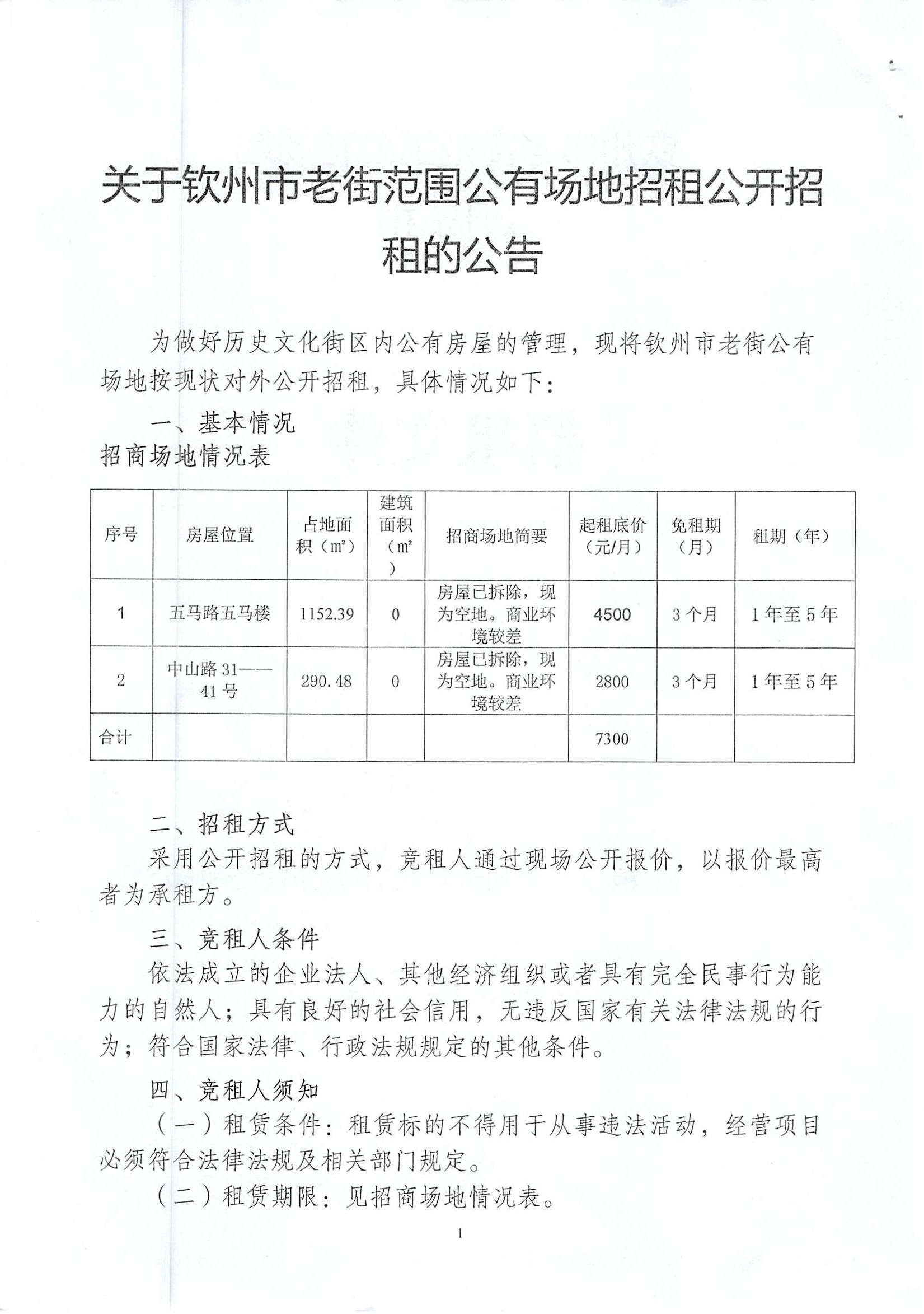 欽州市老街范圍公有場地公開招租