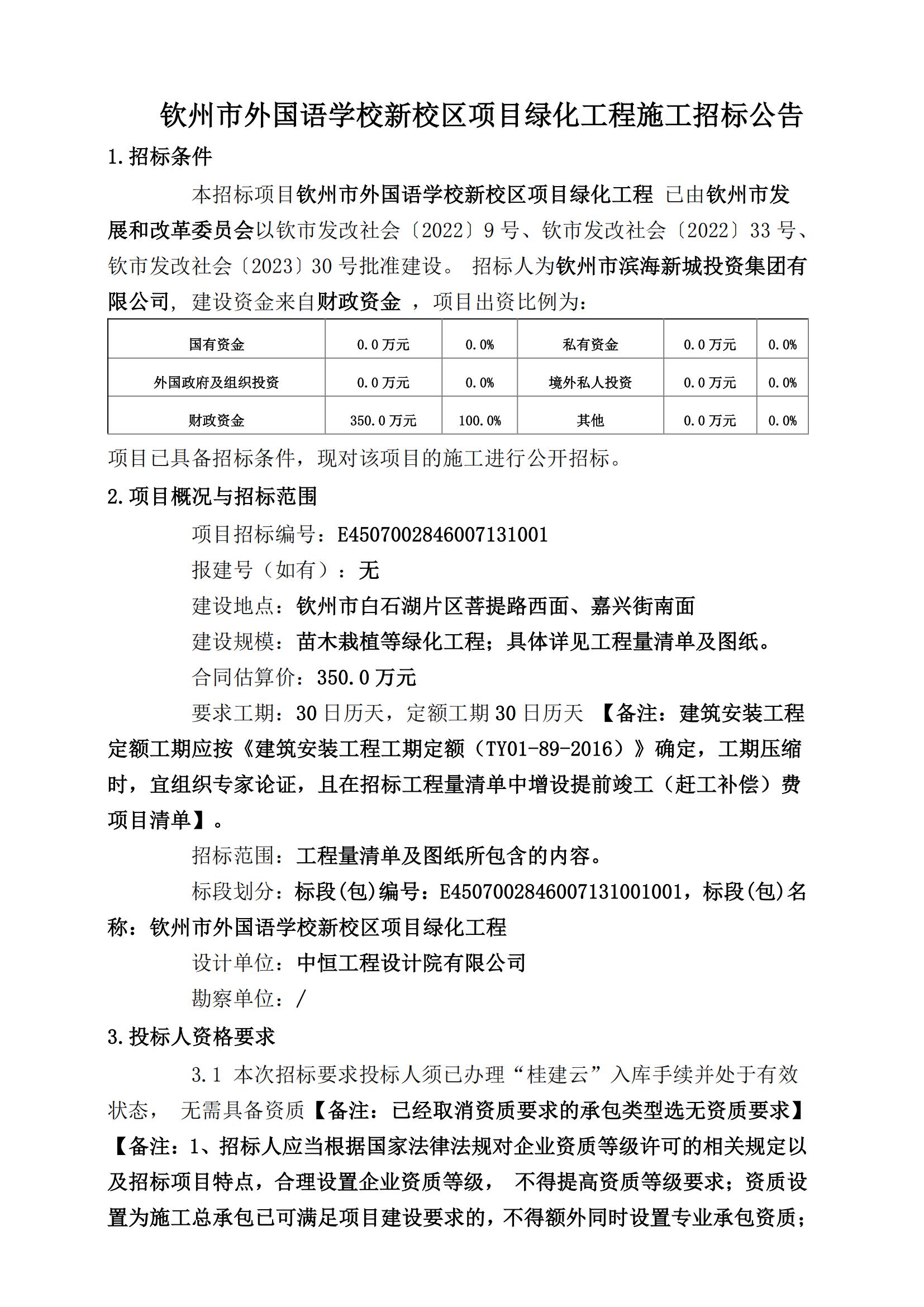 關于欽州市外國語學校新校區(qū)項目材料暫估價的競爭性磋商公告