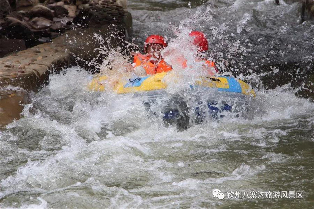 游人乘坐雙人橡皮艇,從清涼的水花中一躍而過,時而輕盈如燕,時而奔騰如虎,一路漂蕩、一路歡叫。
