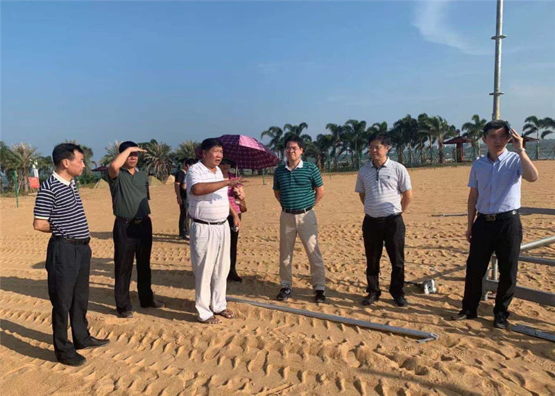 2019年10月9日下午4點(diǎn),潘定喜副秘書(shū)長(zhǎng)到我集團(tuán)公司檢查沙灘排球賽項(xiàng)目現(xiàn)場(chǎng)籌備工作。我集團(tuán)公司副總經(jīng)理余業(yè)勝及相關(guān)現(xiàn)場(chǎng)人員到現(xiàn)場(chǎng)迎接檢查。我集團(tuán)公司副總經(jīng)理余業(yè)勝對(duì)我集團(tuán)公司開(kāi)展關(guān)于沙排賽場(chǎng)地建設(shè)的情況做相關(guān)的工作匯報(bào)。潘定喜副秘書(shū)長(zhǎng)聽(tīng)取匯報(bào)后,他首先對(duì)我集團(tuán)公司近期在建設(shè)沙排賽場(chǎng)地方面所作出的工作表示肯定,其次他要求各個(gè)相關(guān)部門(mén)要通力配合,做好沙排賽場(chǎng)地建設(shè)、宣傳、安全保衛(wèi)、醫(yī)療衛(wèi)生、交通保障的工作。