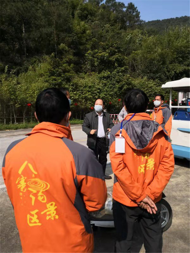 二、為進(jìn)一步傳達(dá)市委、市人民政府有關(guān)疫情防控工作的相關(guān)文件精神,公司領(lǐng)導(dǎo)前往景區(qū)現(xiàn)場(chǎng)指導(dǎo)疫情防控工作,特別強(qiáng)調(diào)當(dāng)前防控工作形式嚴(yán)峻,景區(qū)員工要增強(qiáng)緊迫感和責(zé)任感,切實(shí)加強(qiáng)景區(qū)人員出入管理及消毒清潔,保障游客及公司員工的身體健康和生命安全;