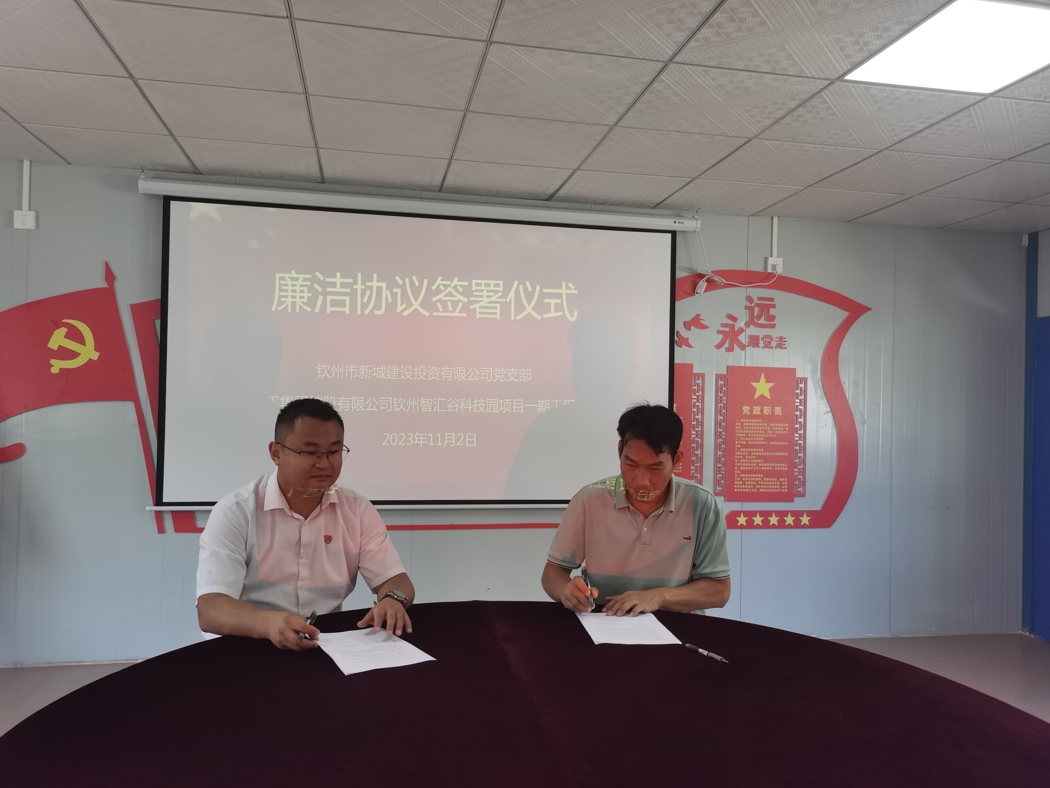 “嚴格落實項目合規(guī)及廉潔風險防控主體責任,在思想上劃紅線、在行為上明界線,堅決遏制項目建設(shè)上腐敗現(xiàn)象的發(fā)生,保持親清企商的項目建設(shè)發(fā)承包方關(guān)系。”2023年11月2日,集團公司黨委委員、副總經(jīng)理劉雙同志與智匯谷科技園項目一期工程項目經(jīng)理劉鐘明簽訂了項目廉潔協(xié)議,簽訂廉潔協(xié)議是集團公司黨委夯實黨風廉政建設(shè)的一項具體舉措。