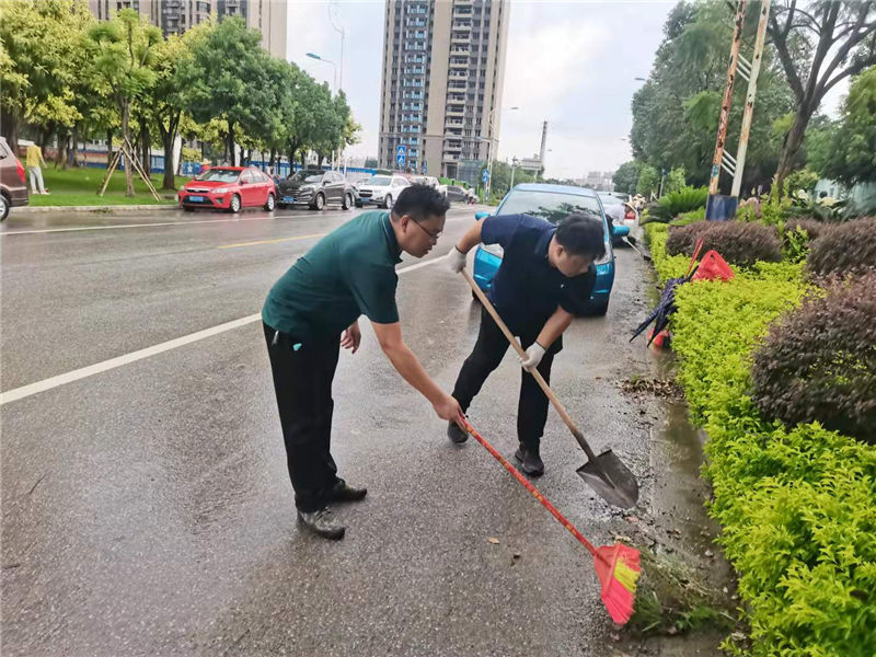 活動(dòng)當(dāng)天,煙雨朦朧。志愿者們有的拿著鏟子,有的拿著掃把,有的拿著垃圾簍,冒雨干起活來。