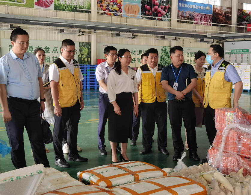 調(diào)研組成員一行先后前往濱海供應(yīng)鏈公司公共配送中心開展實(shí)地考察調(diào)研,期間,吳廣明向調(diào)研組詳細(xì)介紹了公司業(yè)務(wù)開展的基本情況以及公共配送中心在食材集采、收發(fā)、檢測(cè)、溯源、倉儲(chǔ)物流的全過程。