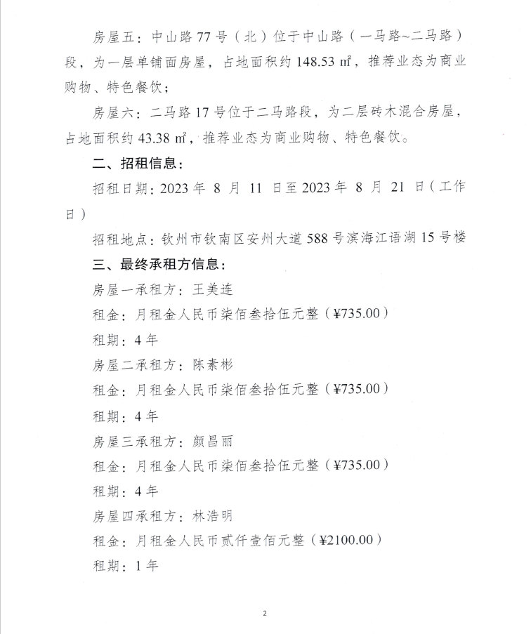 關(guān)于欽州市老街范圍人民南路118號房屋公開招租的公示