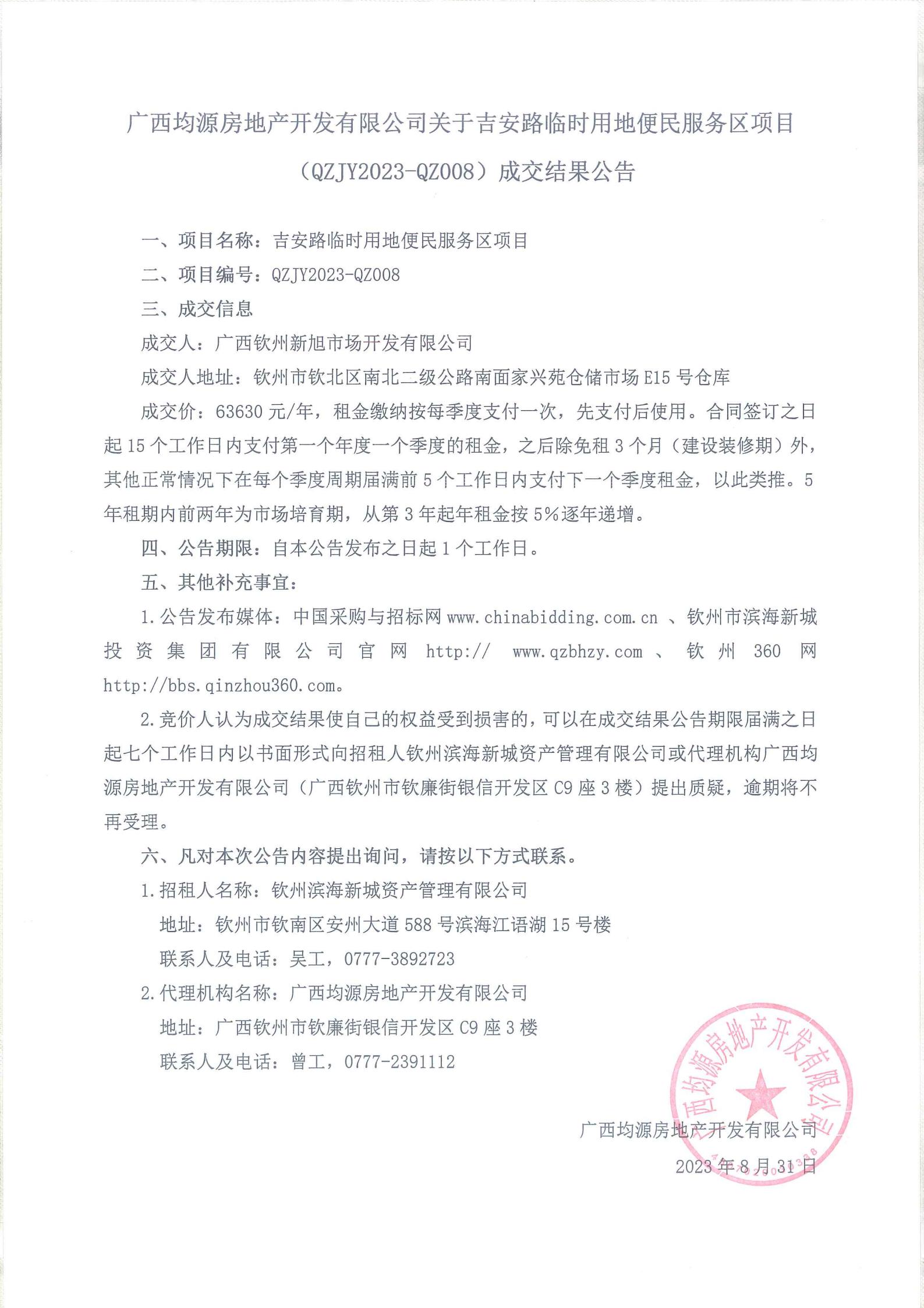 關(guān)于吉安路臨時用地便民服務(wù)區(qū)項目成交結(jié)果公告
