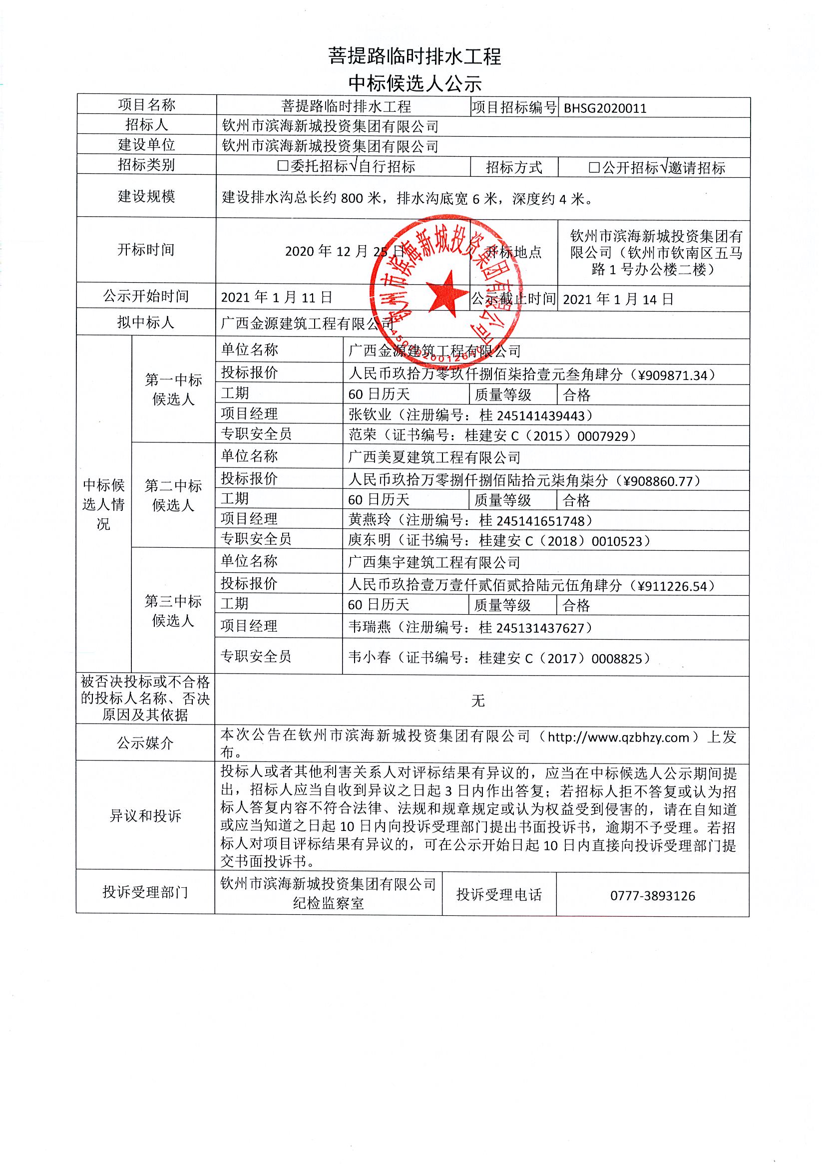 菩提路臨時(shí)排水工程中標(biāo)候選人公示