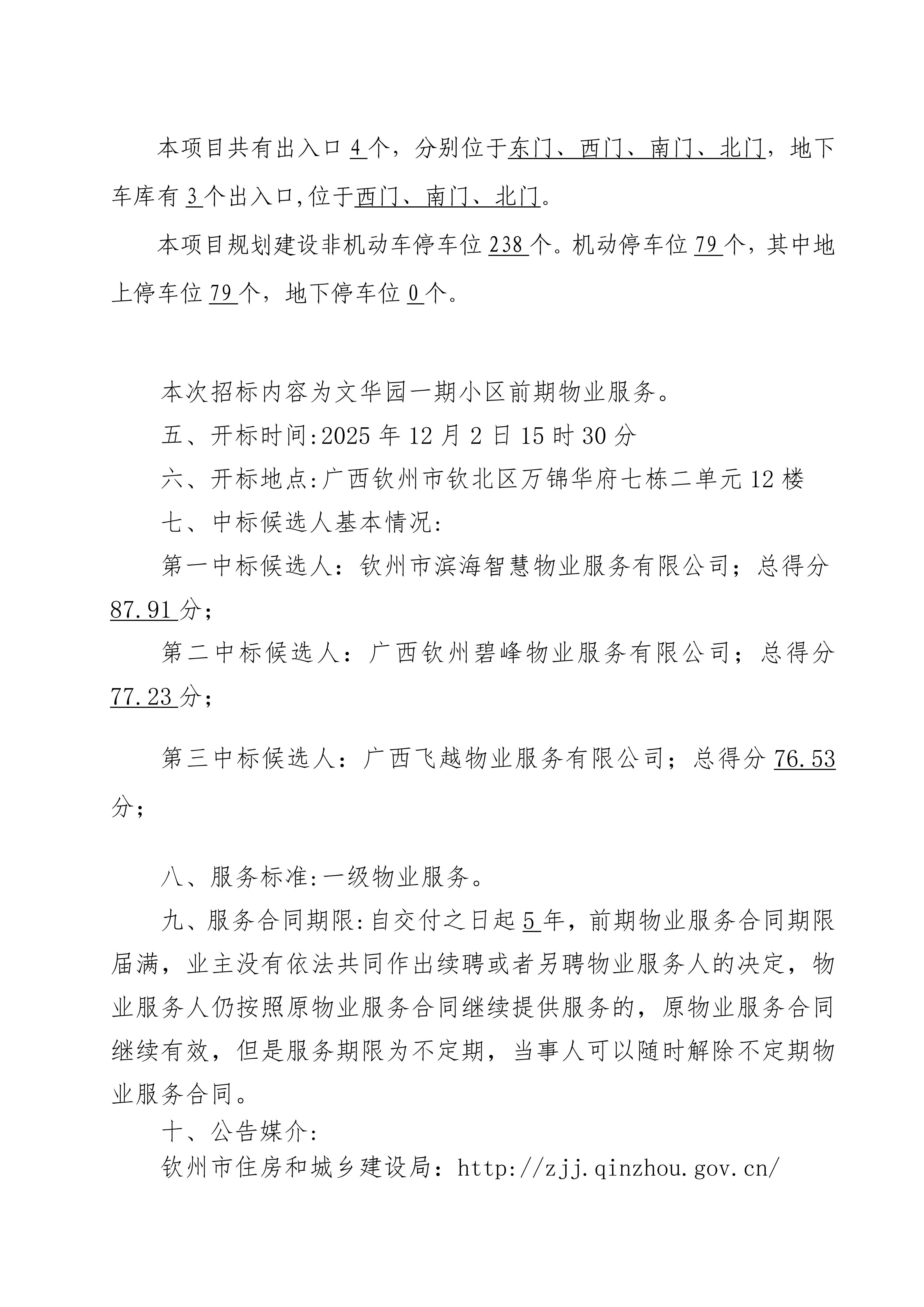 文華園一期小區(qū)前期物業(yè)管理招投標中標候選人公示信息