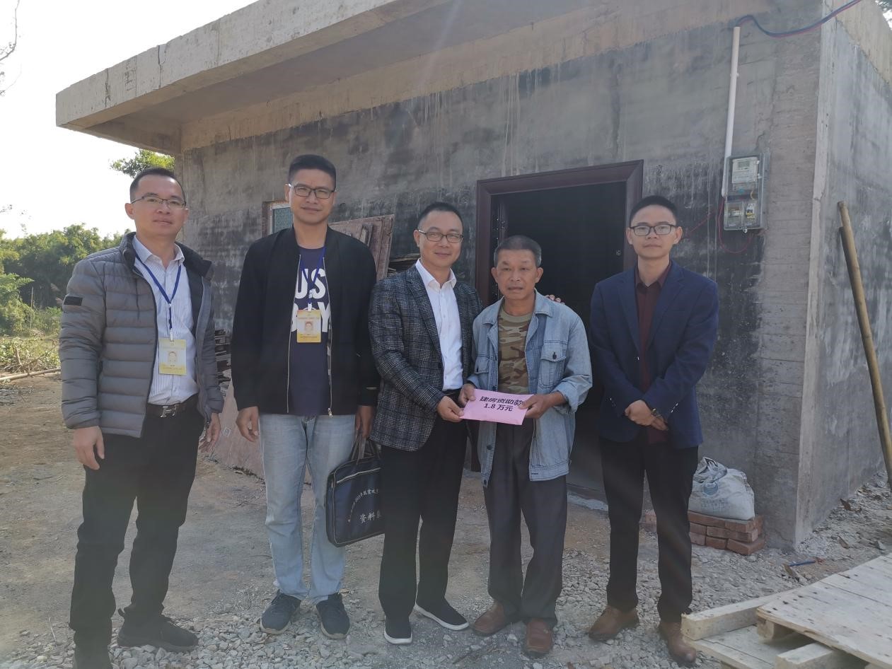 2019年11月14日上午,集團(tuán)公司董事長趙文博一行在新禾村陳基茂新建的房子前,舉行了一場建房捐資活動,為貧困戶陳基茂送上了1.8萬元的建房資助款,為其新房建設(shè)解決燃眉之急,用點(diǎn)滴真情助力脫貧攻堅(jiān)。新禾村兩委干部、駐村工作組、建房施工隊(duì)代表共同見證了建房捐資儀式。