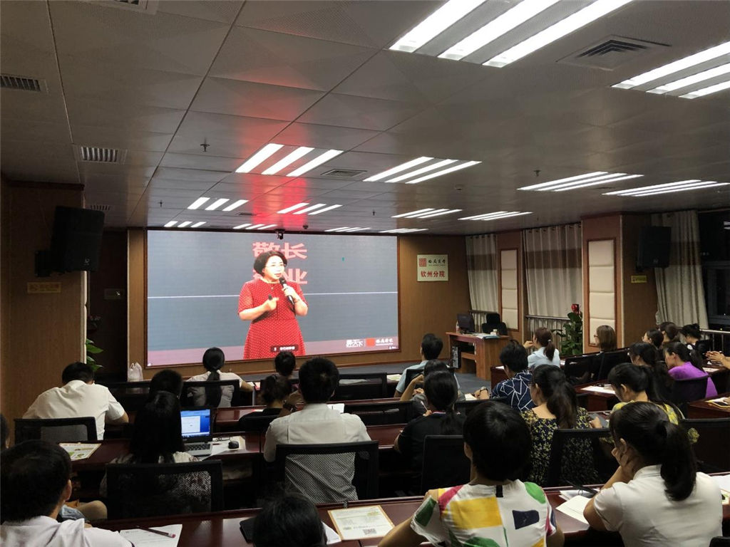 8 月 15 日 19:00 在格局商學(xué)院欽州分院召開欽州市婦女 聯(lián)合會、 欽州市教育局聯(lián)合主辦, 格局商學(xué)院欽州分院承辦 的家庭教育公益講座 《讓愛更有智慧》 我集團公司婦委會組 織女職工參加了講座。